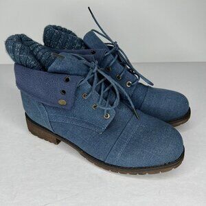 DailyShoes Women’s Blue Denim Boots Sweater-Top Ankle Booties Size 8.5