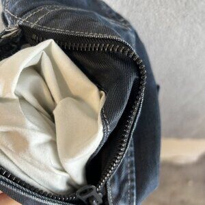 These are a nice Dainese motorcycle pant with zip up side pockets. They have some very light padding in the knees, but no actual pads. Fit is regular, a bit tighter in the thigh than a standard fit jean but I have thicker thighs and they fit fine.