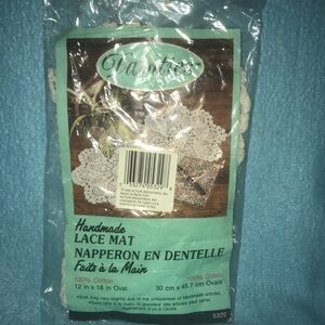 Dainties handmade lace crocheted oval shaped doily 100% cotton vintage 12X18 NWT