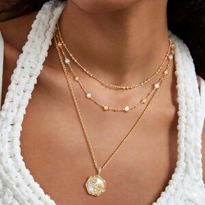 Dainty 18K Gold Plated Necklace with Mother of Pearl - Christmas Gift for Her
