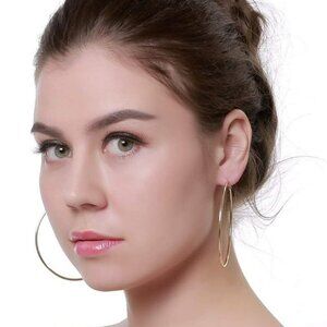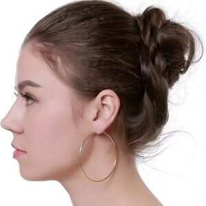 Dainty 70mm Gold Plated Big Large Hoop Earrings for Women Sensitive Ears Fashion