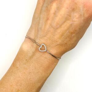 Dainty 925 Cubic Zirconia Heart Cuff Bangle Bracelet