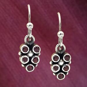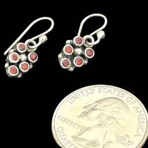 Dainty 925 Sterling Silver & Garnet Earrings - Vintage