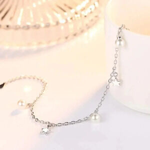 Dainty 925 Sterling Silver Star & Pearl Bracelet