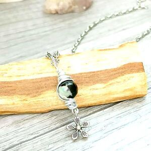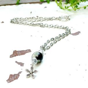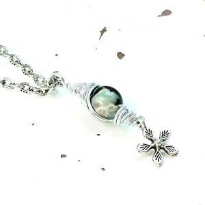 Silver chain accented with round dyed gemstone bead & flower charm