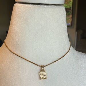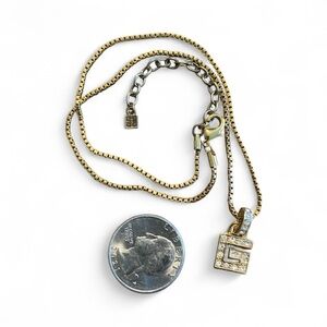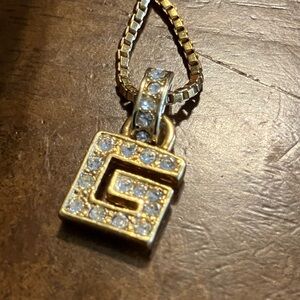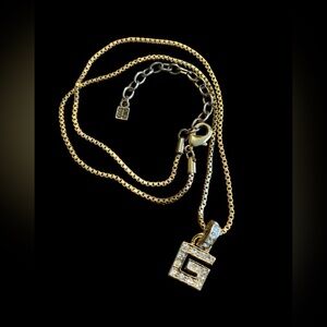 Dainty Blingy Crystal Gold Tone Givenchy G Logo Box Chain Pendant Necklace 16”