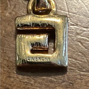 Very lovely Givenchy G logo with crystals lining the logo and the pendant ring. Comes with the original box chain. 15” with a 2.5” extender and lobster claw clasp. This is in overall good condition with some metal fade mostly on the extender chain and quatrefoil tag.