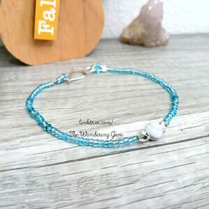 Dainty blue lace agate crystal beaded bracelet