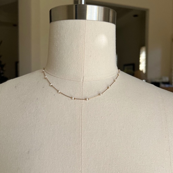 🔴Dainty Boho Minimalist Gold plated Silver Necklace w/white stone beads accent