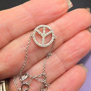 Cute Dainty CZ 925 China Peace Sign Bracelet. Approx. 7" & 8" size loops.