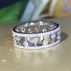 Dainty CZ Full Around Zircon Silver Plated Luxury Fashion Eternity Ring, K892