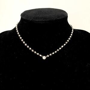 A lovely dainty choker featuring tiny milk glass beads and center CZ.