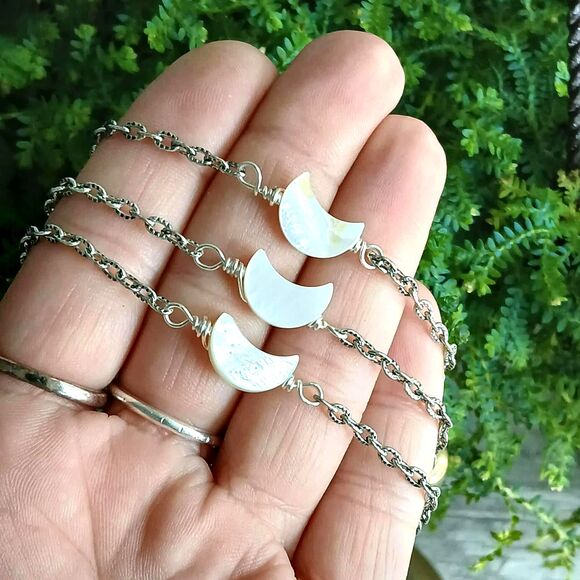 Dainty crescent moon seashell anklet or bracelet