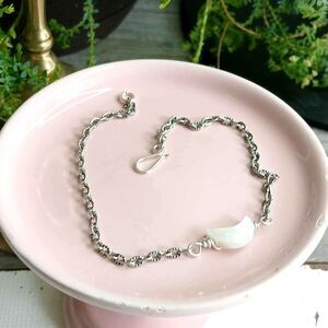 Dainty Crescent Moon Anklet Bracelet, Seashell Jewelry, Shell, 9"