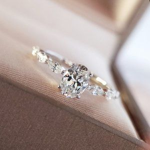 "Dainty Crystal Pure Oval Zircon Thin Sweet Lovely Rings for Women, INDN8382