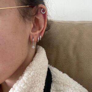 Dainty Crystal Flower Charm Hoop Earrings in Silver