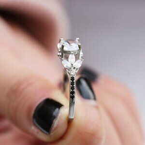 "Dainty Diamond Flower Leaf Beautiful Carved Rings for Women, EVGG1531