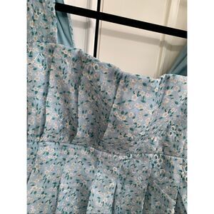 Dainty Effect Blue Floral Embroidered Pleated Puff Sleeve Top NWT
