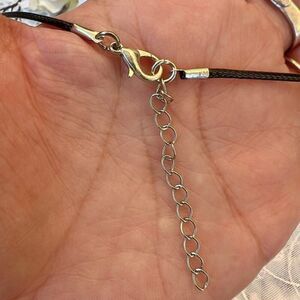 I'm including a new 20" black fiber cord with silver tone lobster clasp and ~1.5" extender. This is missing the original chain with Lucky Brand clover hang tag but this li'l necklace is not missing any of it's charm! ;)