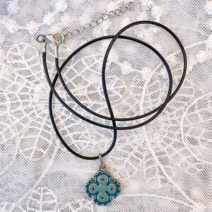Lucky charm necklace Maltese cross enamel turquoise cord necklace French groovy festival Coachella hippie boho gypsy free spirit prairie cottagecore layering minimalist maximalist artsy colorful coastal cowgirl eclectic urban steampunk whimsical