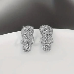Dainty Flip Flop Ear Studs with Rhinestones in Silver color