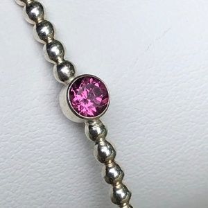 This is a sweet little dainty bracelet featuring a 1/4ct Rhodolite Garnet, bezel-set in silver. Garnet is the birthstone for January, and Rhodolite Garnet has a purplish red, raspberry hue, instead of the brownish red of Mozambique garnets. I made about 50 of these while I was practicing bezel-setting, so I have them in many different stones. I will be adding listings over the next few days, but if you're interested in a particular stone, just ask because I probably have it! LOL!