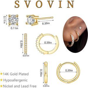 Made of 14K gold plated brass and AAAAA Cubic Zirconia stones, these gold earring stack are built to last. They're also lead and nickel-free, making them safe for sensitive ears.