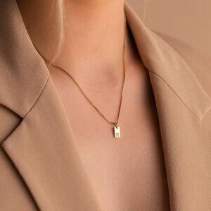 Features: Sleek sterling silver pendant with a shiny 14K gold plating, featuring a stylish initial 'M' that symbolizes motivation and maturity. The chain is a delicate box style with an extension for perfect fit. A subtle yet versatile piece that adds a personal touch to any outfit.
