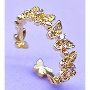 Dainty Gold Rhinestone Butterfly Ring Adjustable Butterflies