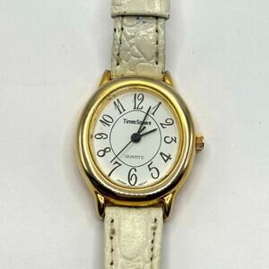 Dainty Gold Times Square Watch. Fully functional with brand new batteries. Fits 6 1/2 in wrist or near. Has some minor wear (Shown in Pictures)