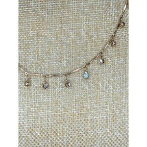 Dainty Gold Tone Necklace With Clear Crystal Accents & Adjustable Lobster Clasp