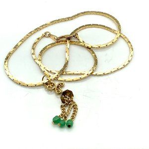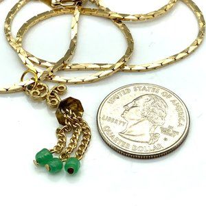 Dainty Green Dangles Pendant on Gold Tone Vintage Chain Necklace