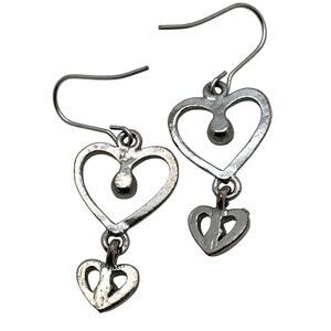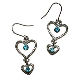 Dainty Heart Dangle Earrings Sparkling Blue Rhinestone Sweet Romance Whimsy