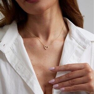 Dainty Hollow Heart Necklace 14K Gold Plated Tiny Heart CZ Pendant Necklace Gift