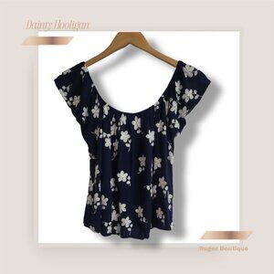 🌿Dainty Hooligan Women's Medium Navy Floral Cold Shoulder Boho Crop Top