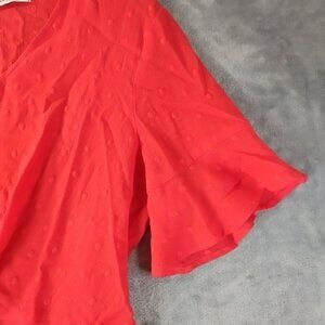Dainty Hooligan Womens Tie Front Eyelit Top M Red Ruffle Sleeve Keyhole Romantic
