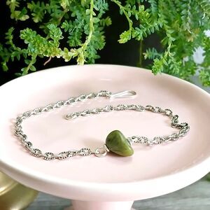 Silver tone chain accented with gemstone bead