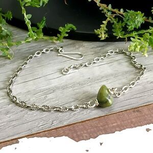 Dainty Jasper Crystal Anklet Bracelet, Adjustable Minimalist Gemstone Jewelry 9"
