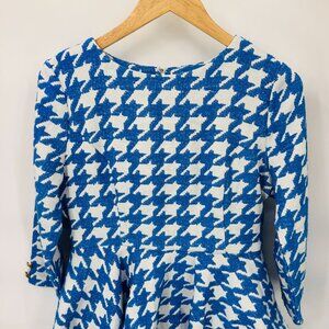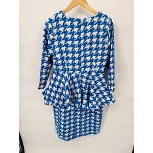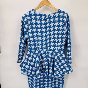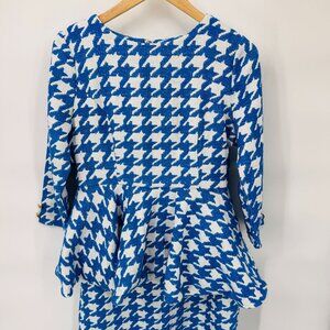 Dainty Jewell's 2 Piece Skirt Peplum Top Set Womens L White Blue Houndstooth Pla