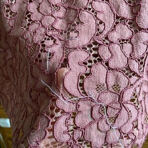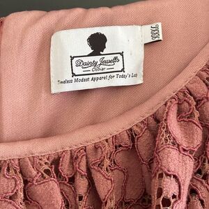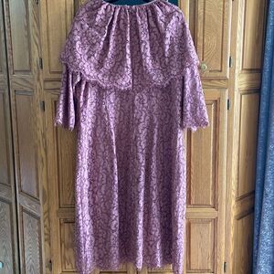 Dainty Jewells Antebellum Dark Mauve Modest Lace Slimming Sheath Midi Dress. Size: xxxl. Fair used condition. Back zipper. Slimming fit. Scalloped edges, draped lace across the bodice for a vintage flair.
