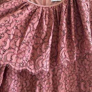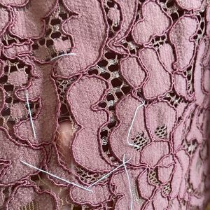 This dress has some flaws: as shown in the last photos - a tiny hole in the lace - the price reflects the condition.