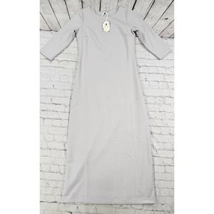 Dainty Jewell's Solid Gray 3/4 Sleeve Maxi Lined Dress WOMENS SIZE SMALL