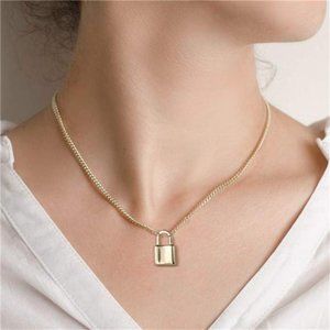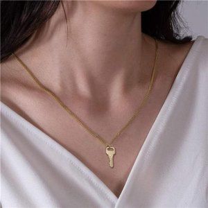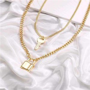 LAYERED NECKLACE: Dainty layered choker necklaces with Key, Lock, in Gold Plated Y necklace.