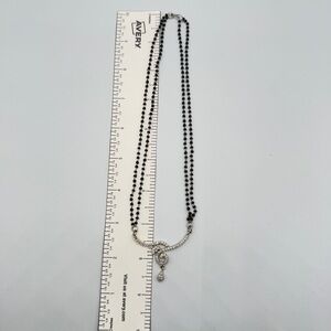 Dainty Necklace with Black Beaded Chain and CZ studded Asymmetrical Pendant
