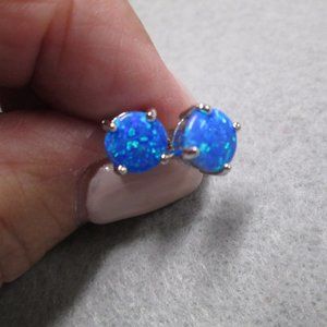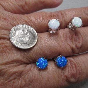 For your consideration is this fabulous pair of solid 925 sterling silver stud earrings with vivid fiery opal stones. Your choice of white opal OR blue opal stones. 7mm across, easy wearable size. Absolutely beautiful and rich looking! Pierced post. Nicely made. Stamped 925.