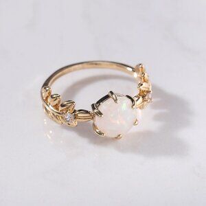 Dainty Opal CZ Gold Plated Beautiful Fashion Leaf Trendy Ring for Women, UNVN12038