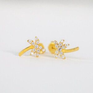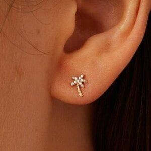 Dainty Palm Stud Earrings 14K Gold Sterling Silver Cubic Zirconia Hypoallergenic