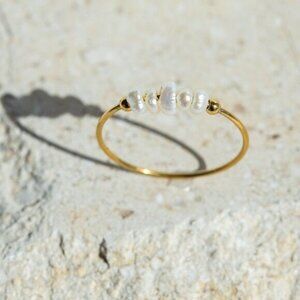 Dainty Pearl Ring Freshwater Pearl Gold Ring Waterproof Gold Ring Stacking ring