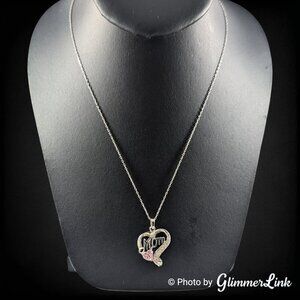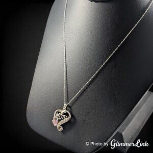 Dainty Pink CZ Mom Heart October Birthstone 925 Sterling Silver Pendant Necklace