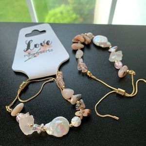 Elegant pull tie chain bracelet with natural stones and beads, metaphysical crystals. Adjustable dainty gold pull tie chain adjustable bracelet with gold accent beads, natural stones, and freshwater pearls. Each bracelet is unique and one of a kind, due to the natural and genuine nature of the stones.